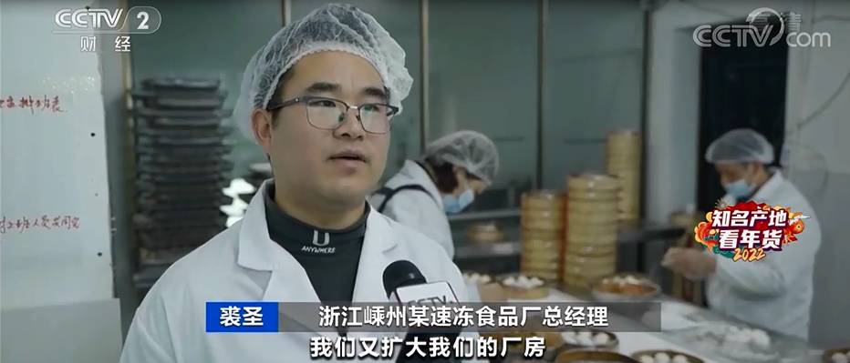 浙江嵊州某速冻食品厂总经理 裘圣:订单量越来越大,我们又扩大我们的厂房,我们现在在新建的厂房,日生产量达到十万个左右。