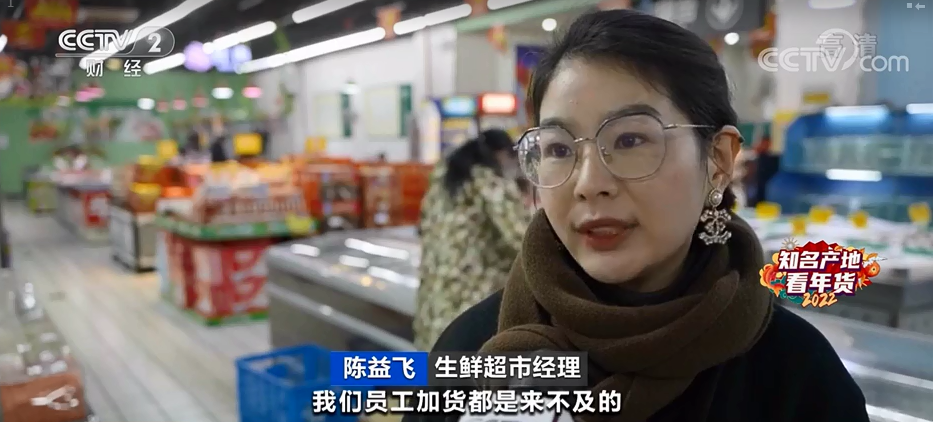生鲜超市经理 陈益飞:像今天早上,我们员工加货都是来不及的,本来的排面是有两个小排面,现在也增加到四个大排面了。